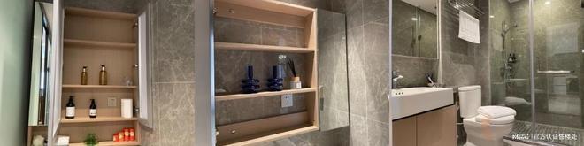 按功能精细划分,洗漱区高颜值镜柜,不同高度分层,多元收纳。干湿分离二段式卫生间,整个卫生间空间从地砖到墙砖的选材,都选用了防滑、吸水率低、高强度的马可波罗瓷砖,既美观又实用。
